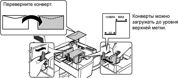 При загрузке конвертов необходимо задействовать рычаг сброса давления термозакрепления. Обязательно задействуйте рычаг сброса давления термозакрепления, обратившись к разделу " Рычаг сброса давления термозакрепления".