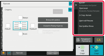 При настройке функций в каждом режиме на панели действий