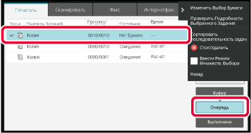 обработки, коснитесь кнопки [Буфер], [Очередь], [Заканчивать].
