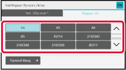 Коснитесь кнопки [Прямой Ввод], чтобы ввести числовое значение формата загруженной бумаги.