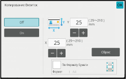 Коснитесь кнопки [On] и укажите нужный размер оригинала.