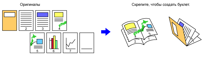 Эта функция удобна для создания буклетов и брошюр из копий.