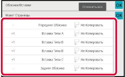 ![]() Листы обложки будут вставлены в начале и конце копий. |