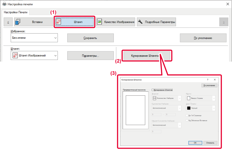 - Нажмите кнопку [Копирование Штампов].