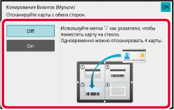 Коснитесь кнопки [On] и укажите нужный размер оригинала.