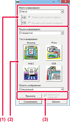 Кнопка [Формат Изображения]:Нажмите эту кнопку, чтобы указать область сканирования