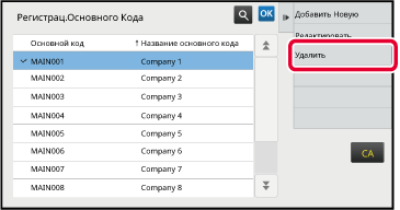 Касанием выберите основной код, который нужно удалить, затем на панели действий коснитесь пункта [Удалить].