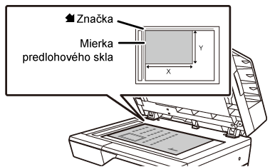 Položte originál lícom nadol a zarovnajte horný ľavý roh originálu so zadným ľavým rohom (na hrote značky