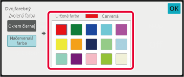 Po dokončení nastavení klepnite na tlačidlo [OK] na obrazovke [Dvojfarebne] a skontrolujte, či je zmenené nastavenie zobrazené na obrazovke farebného režimu vedľa tlačidla [Dvojfarebne].Originál je kopírovaný v akejkoľvek jednej
