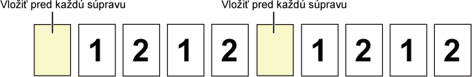 oddeľovacej strany pred každú súpravu dvoch kópií