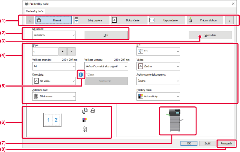 tandemovú tlač a ďalšie podrobné nastavenia tlače.