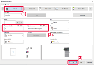 a "Veľkosť výstupu" je nastavené na [Veľkosť rovnaká ako originál], "Typ papiera"