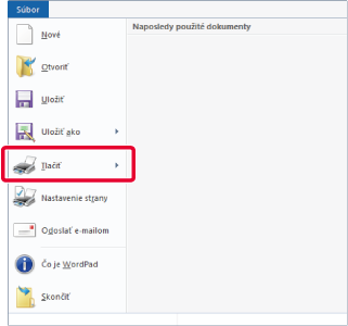 Z ponuky [Súbor] programu WordPad vyberte možnosť [Tlač].