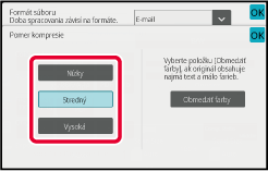 kompresie/kompresný pomer) na odoslanie naskenovaného obrázka počas