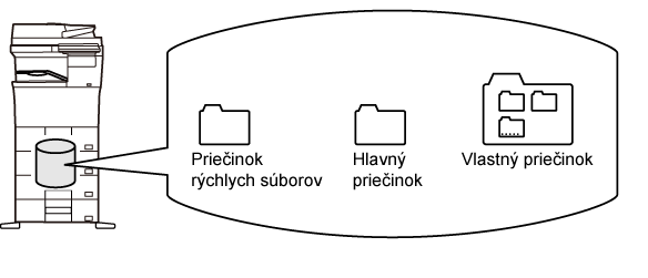 Pri vykonávaní úlohy kopírovania, odosielania obrázkov alebo inej úlohy ukladá táto funkcia údaje dokumentov na lokálnu jednotku. Na rozdiel od Rýchleho súboru, sa dajú rôzne typy informácií pri ukladaní súboru pripojiť k danému súboru na zefektívnenie práce so súbormi. Heslo môžete taktiež nastaviť. |