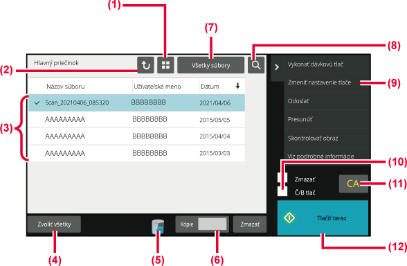 Obrazovku na výber súborov možno zobraziť vo formáte