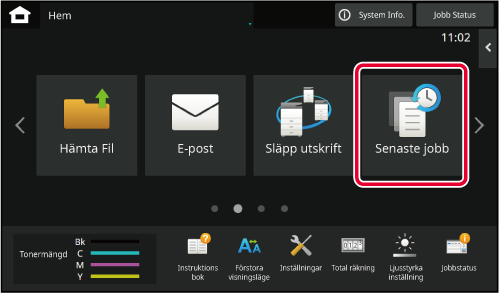 de senaste jobben. Tryck på ett objekt i listan när du vill visa jobbinformation