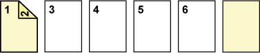 ![]() Gör en ensidig kopia av den första originalsidan som framsida och även en ensidig kopia av den sjätte originalsidan. Infogar omslag efter kopiorna. |