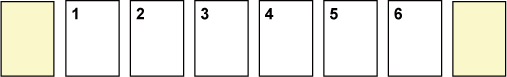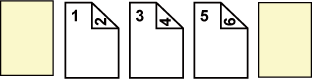 ![]() Infogar en framsida före kopiorna och gör en ensidig kopia av den sjätte originalsidan som baksida. En ensidig kopia görs på den femte originalsidan. |