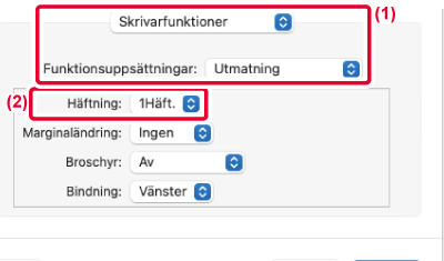 om du använder häftningsfunktionen tillsammans med dubbelsidig utskrift.