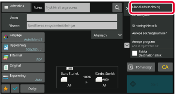 När du använder adressboken i enkelt skanningsläge eller e-postläge