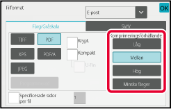 (På BP-C533WR krävs OCR-expansionssatsen.) Tryck på någon av knapparna [Komprimeringsläge] eller [Komprimeringsförhållande].