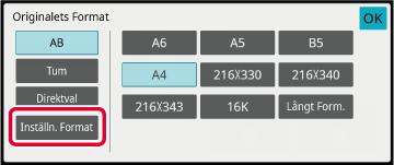 Tryck på knappen [Scan. Storlek] och sedan på fliken [Inställ.format].