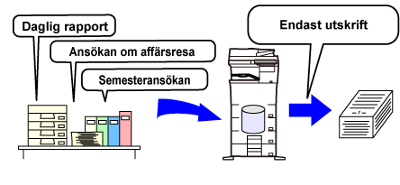 | Skriva ut konferensmaterial med samma inställningar | Skriva ut bokföringsark vid behov |