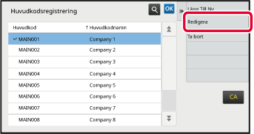 Välj huvudkoden som ska redigeras genom att trycka på den och trycka på [Redigera] på åtgärdspanelen.