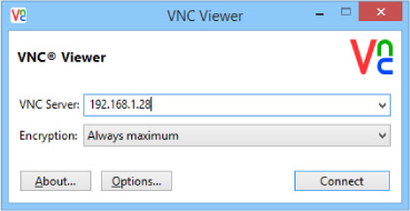 Starta VNC-visningsprogrammet, ange maskinens IP-adress i rutan "VNC Server" och klicka på [Connect].