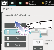 Dokunma Panele parmağınızla dokunun ve ardından parmağınızı hızlıca çekin. Bir tuş, sekme veya onay kutusu seçmek için bu yöntemi kullanın. |