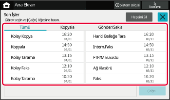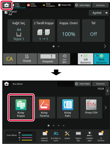 [Ana Ekran] tuşuna dokunulması, dokunmatik panelde