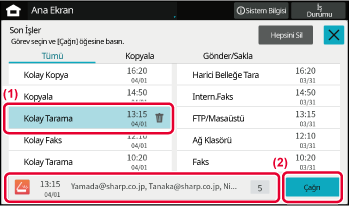 tuşa dokunun. Ekranın altında iş ayrıntılarını görüntülemek için listedeki