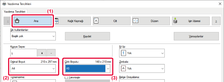 - [Çıktı Boyutu] şıkkında, yazdırma işleminde seçilecek gerçek