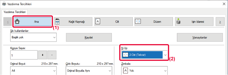 - "N-Up" bölümünde tekrar sayısını seçin.