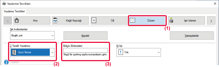 BELİRLİ SAYFALARIN ÖN TARAFA YAZILDIĞI İKİ TARAFLI YAZDIRMA (BÖLÜM