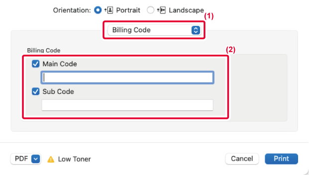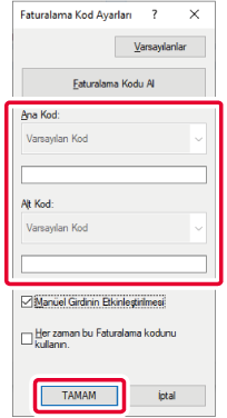 Yazdırma işlemi başladığında, faturalama kodu ayar ekranı