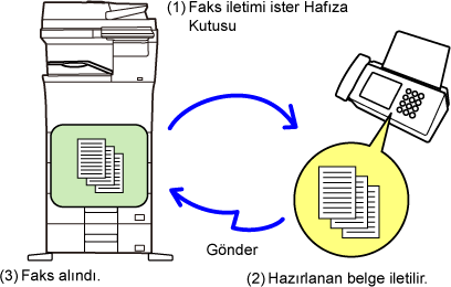 Makineniz diğer makineyi arar ve faks alımını başlatır.Bekletmeyi kayıtlı bir karşılamayı dinledikten