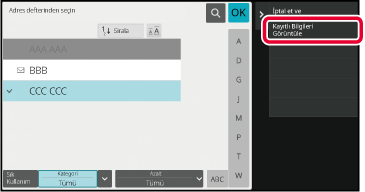 Adres defteri ekranında, işlem panelinde [Yenı Ekle] tuşuna veya başlangıç ekranında [Adres Kontrol] simgesine dokunun.