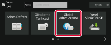 • Global adres defterinden bir hedefi kullanmak için, işlem panelindeki [Global Adres Arama] öğesine dokunun.