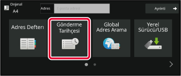 Ana ekranda veya adres defteri ekranında, işlem panelindeki [Gönderme Tarihçesi] öğesine dokunun.