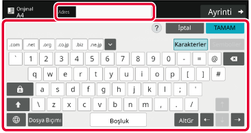 • Hedef adresi girdikten sonra, programlanabilir klavyeyi kapatmak için [TAMAM] tuşuna dokunun.