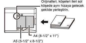 A5 (5-1/2" x 8-1/2") boyutlu orijinalleri A4 (8-1/2" x 11") boyutlu orijinallerle