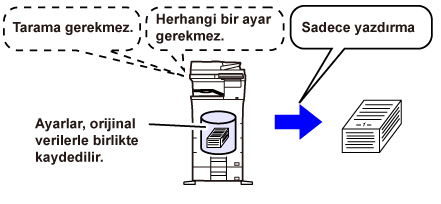 Fotokopi, görüntü gönderme ve diğer işler yapılırken bu işlev belge verisini yerel sürücüye kaydeder. Dosya adı veya diğer bilgileri girmeden hızlı ve kolay şekilde belge verilerini kaydetmek istiyorsanız bu işlevi kullanın. Kaydedilen dosya diğer kişiler tarafından da kolayca kullanılabilir. Başkalarının kullanmasını istemediğiniz dosyaları kaydetmek için bu yöntemi kullanmayın. |
