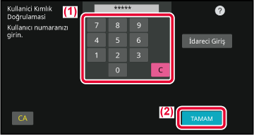 Sayısal tuşları kullanarak (5 ila 8 haneli) kullanıcı numaranızı girin.