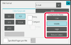 (On the BP-C535WR, the OCR expansion kit is required.) Tap the [Compression Mode] key or [Compression Ratio] key.