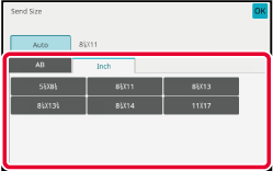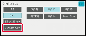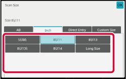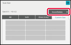 Tap the [Scan Size] key and tap the [Custom Size] tab.