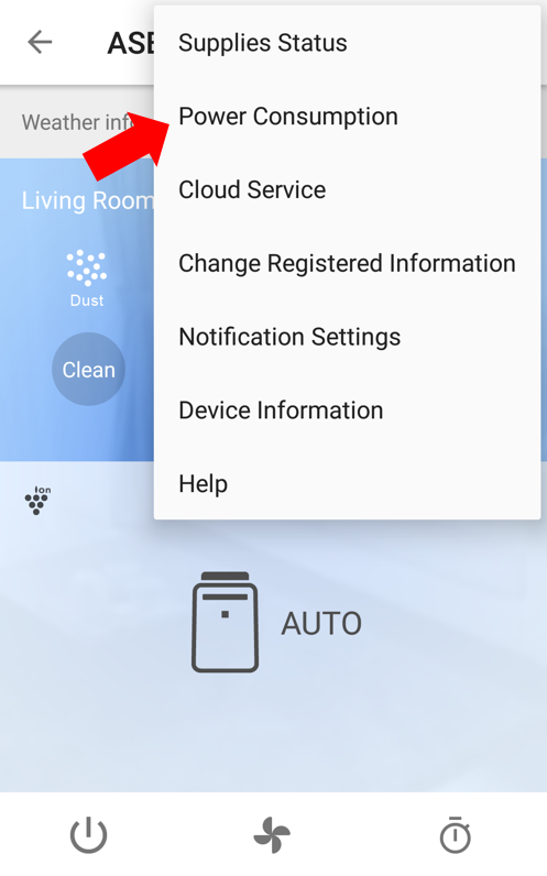 2,Press "Power consumption" from Air-purifier operation menu.