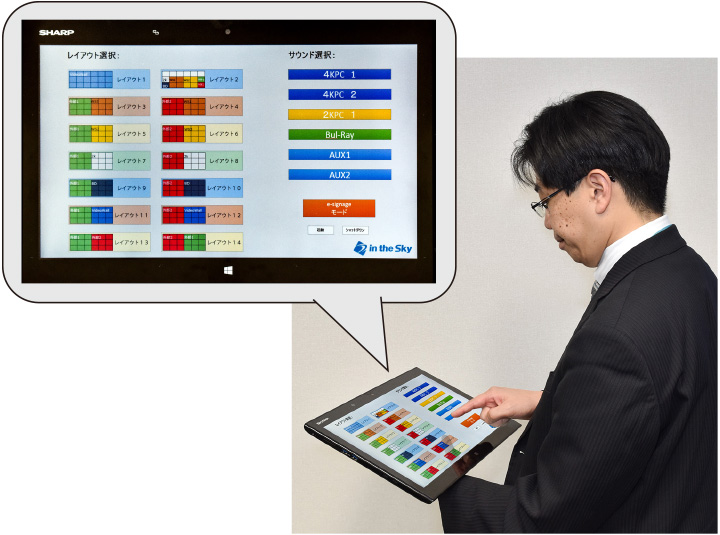 For the signage, the video created at our company is distributed from e-Signage (contents delivery display system). The system is easy to use as we can control the contents with simple operations from a tablet terminal. We hope to use the system to reduce time and effort by using the schedule edit function, which displays optional contents at the designated date and time or switching contents at specific timings, such as at the new fiscal year.
