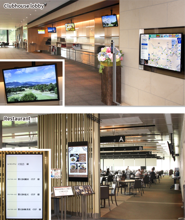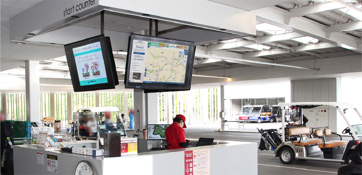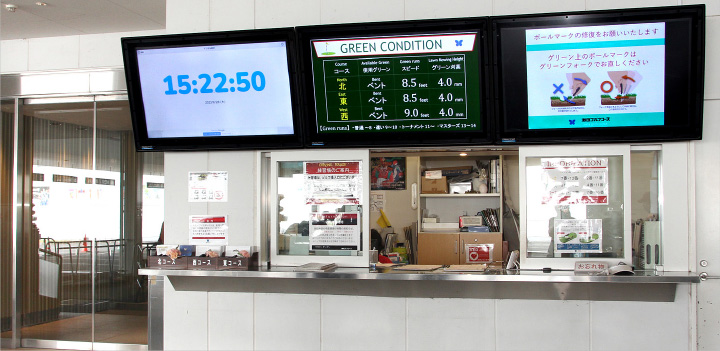 We provide various forms of information and guidance to our customers through displays located throughout the clubhouse. The installation of the e-Signage S Cloud Service allows any staff member to change and distribute the content shown on the displays from any location. The previous system had many limitations; for example, updates could only be made from a single administrative PC, and we had to ask a specialized vendor to add video content. Now, we can flexibly respond to requests, such as to change the name of a competition at short notice or show a video prepared by the organizer of a private competition. This capability is helping us enhance our customers' satisfaction.